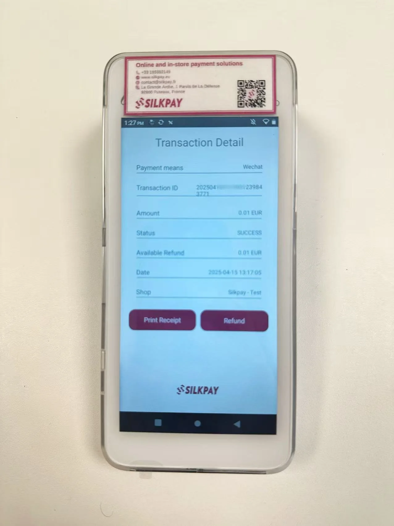 Transaction refunds through Silkpay’s back office and POS terminal.